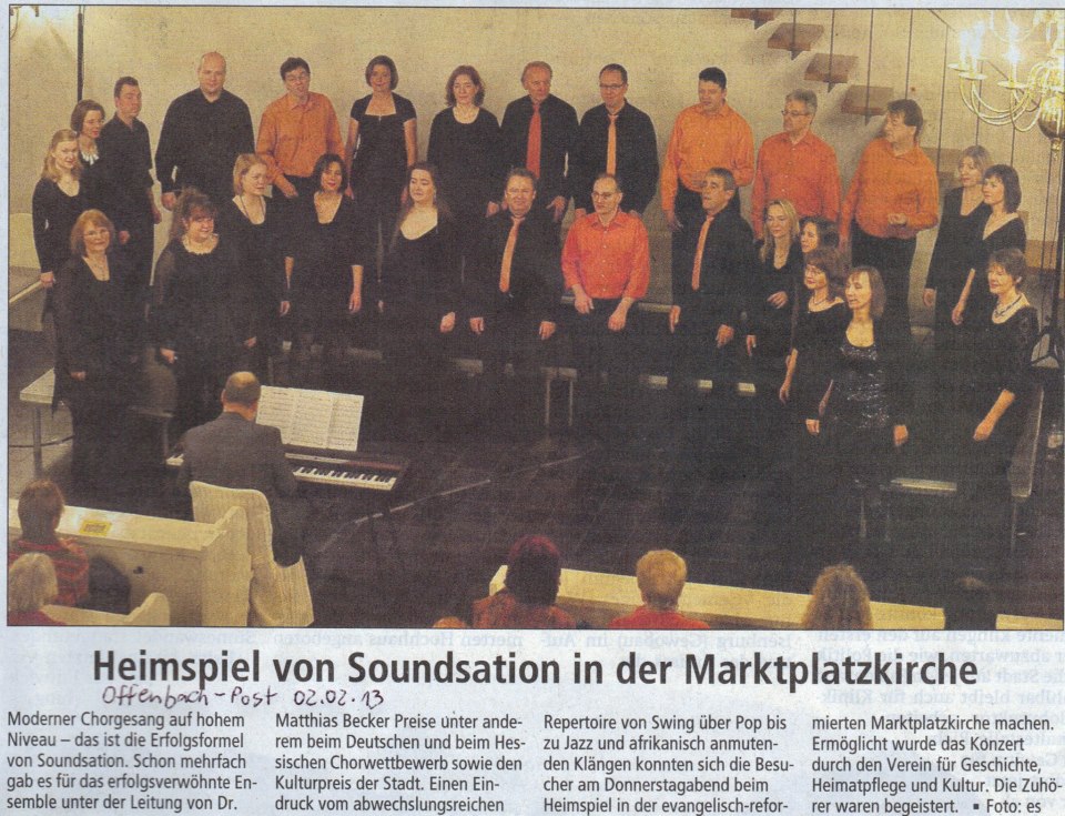 "Heimspiel von Soundsation in der Marktplatzkirche" (Offenbachpost)