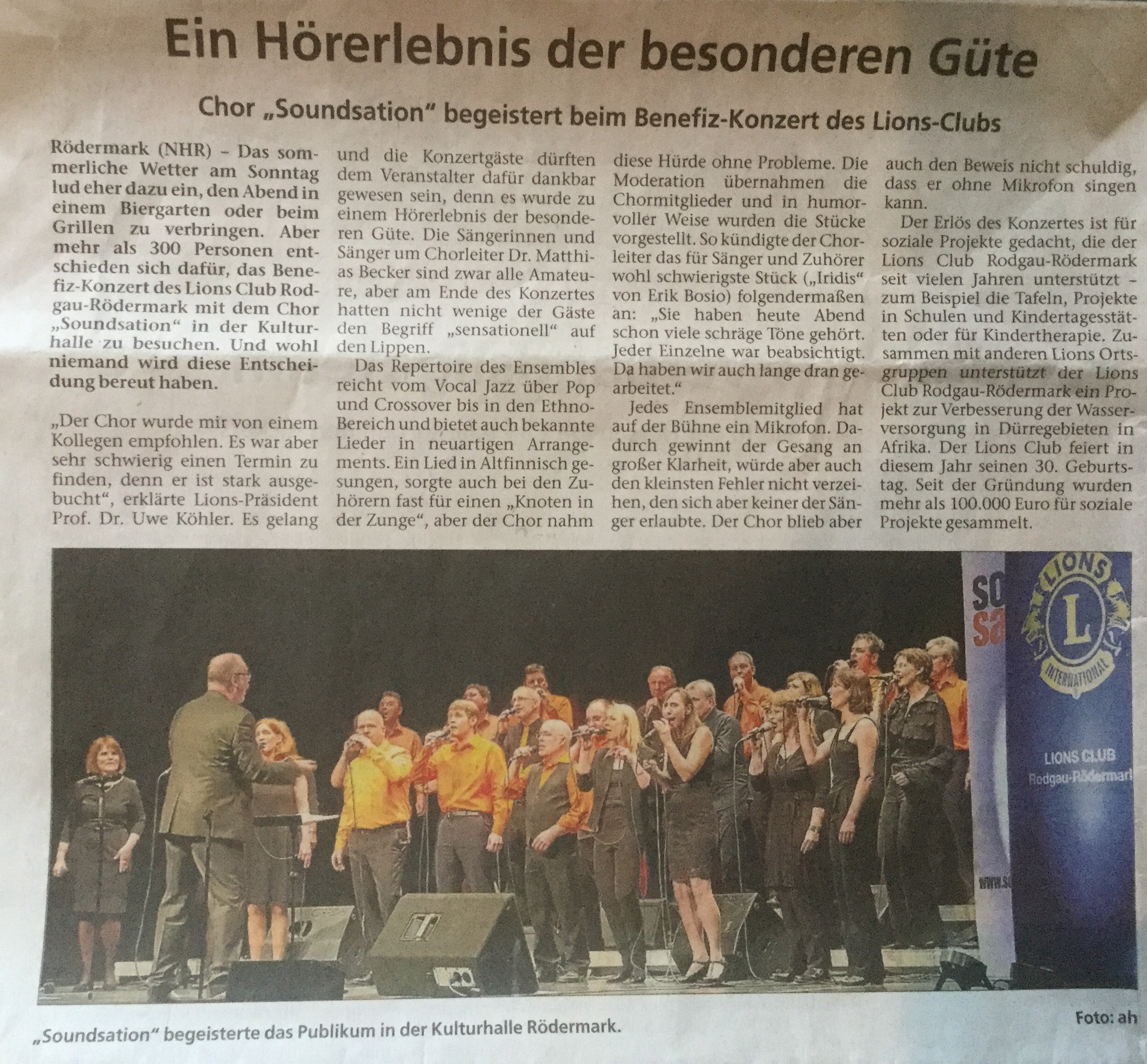 22. Mai 2016 Soundsation-Benefizkonzert des Lions-Clubs Rodgau-Rödermark