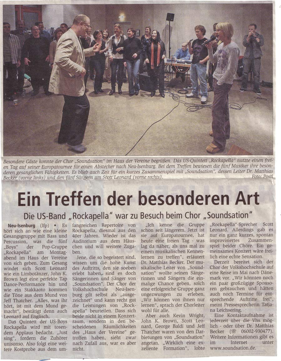 2008: Werkstattkonzert mit Rockapella (Offenbach Post)